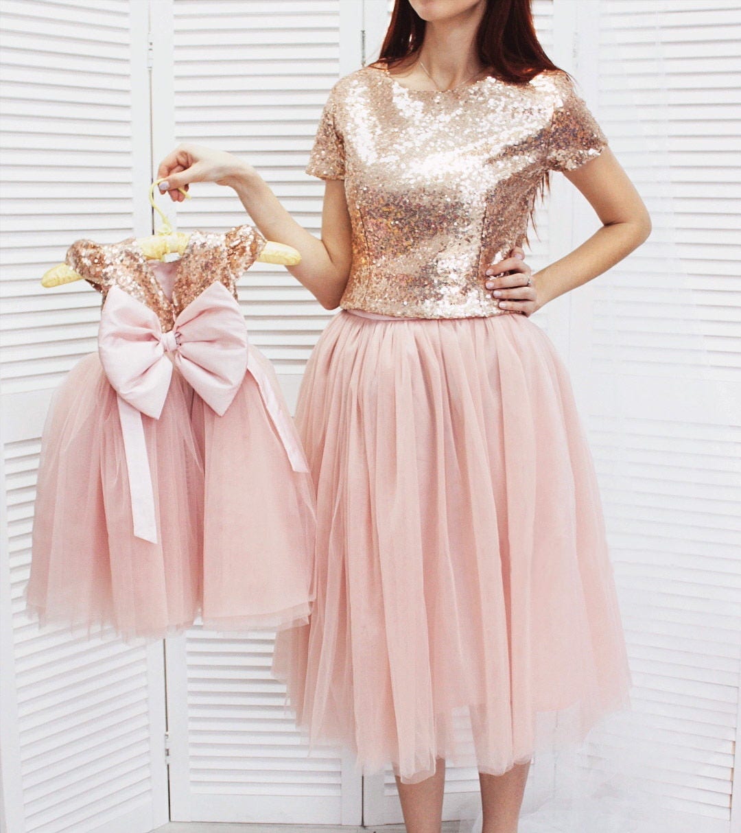 Get deals with coupon and discount code! We offer a complete set of matching dresses for a mother and daughter. ✓ price range for singles: Enquire for price details ✓ shipping facility: Matching mother daughter dress, blush pink dress, christening dress blush matching party tulle outfits for birthday party and any special occasion.